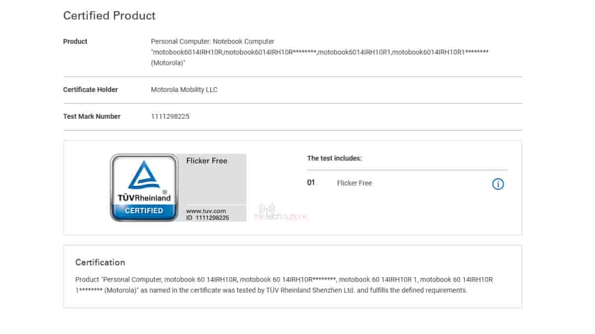 Motobook 60 – Spotted on BIS, TUV Rheinland, and Lenovo Support List