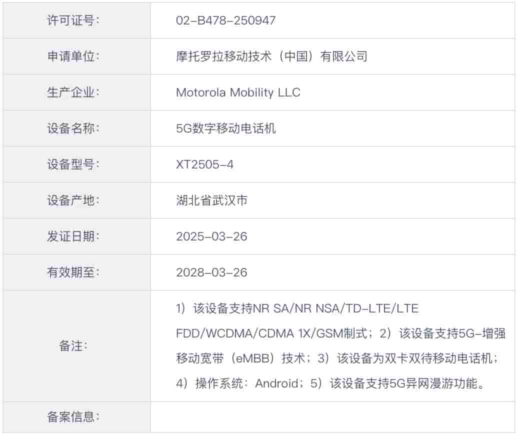 About the Motorola ‘XT2505-4′ smartphone, it has been certified by the TENAA and MIIT authorities with the certificate number of ’02-B478-250947’. This device has also been categorized as a 5G digital mobile phone.