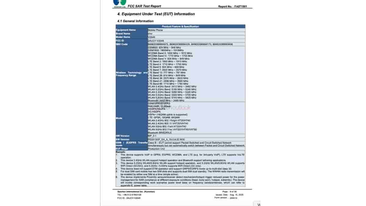 New Vivo 4G Smartphone (V2549) Receives the FCC Certification, Revealing Dual-Band WiFi, Bluetooth BR/EDR/LE, 8GB/256GB Storage, and More