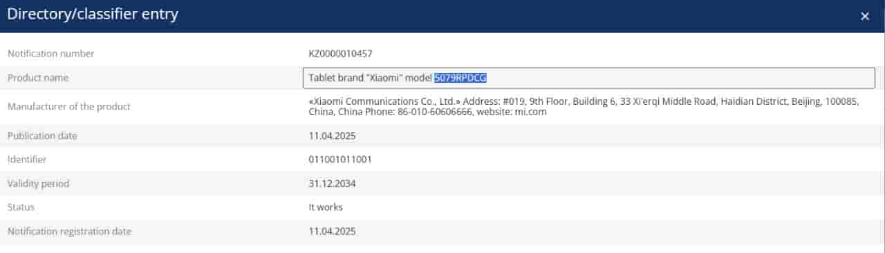 Xiaomi devices with model numbers – ‘25069PTEBG’ (~smartphone) and ‘5079RPDCG’ (~tablet) have received the EEC certification with notification numbers – ‘KZ0000010455’ and ‘KZ0000010457’, respectively.