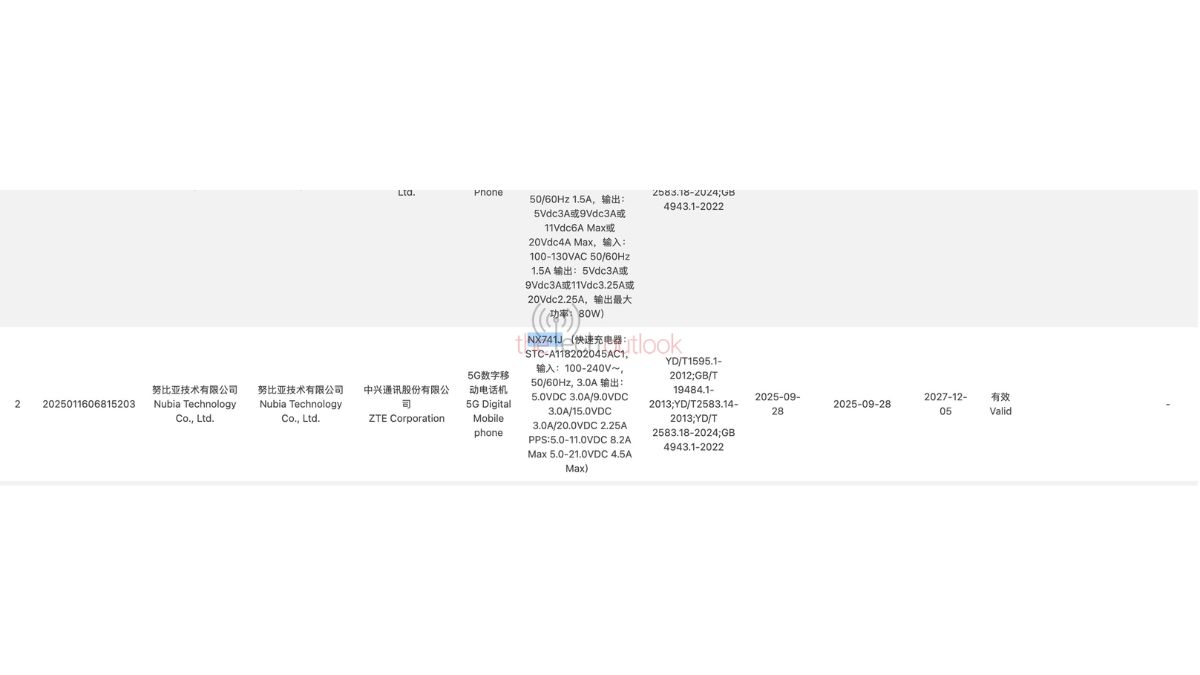 Nubia Z80 Ultra (NX741J) Appears on China’s 3C and MIIT Certification Databases: 100W Wired Fast Charge Support and Connectivity Aspects Revealed
