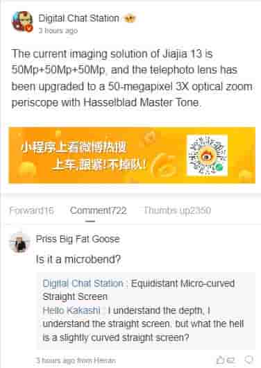 Below in the comment section the tipster has also replied to a user that the device will feature an equidistant micro-curved straight screen. This would mean that the screen might look like a flat screen even though it is curved. Also, OnePlus may focus on reducing eye strain with this new screen setup just like the OnePlus 12.