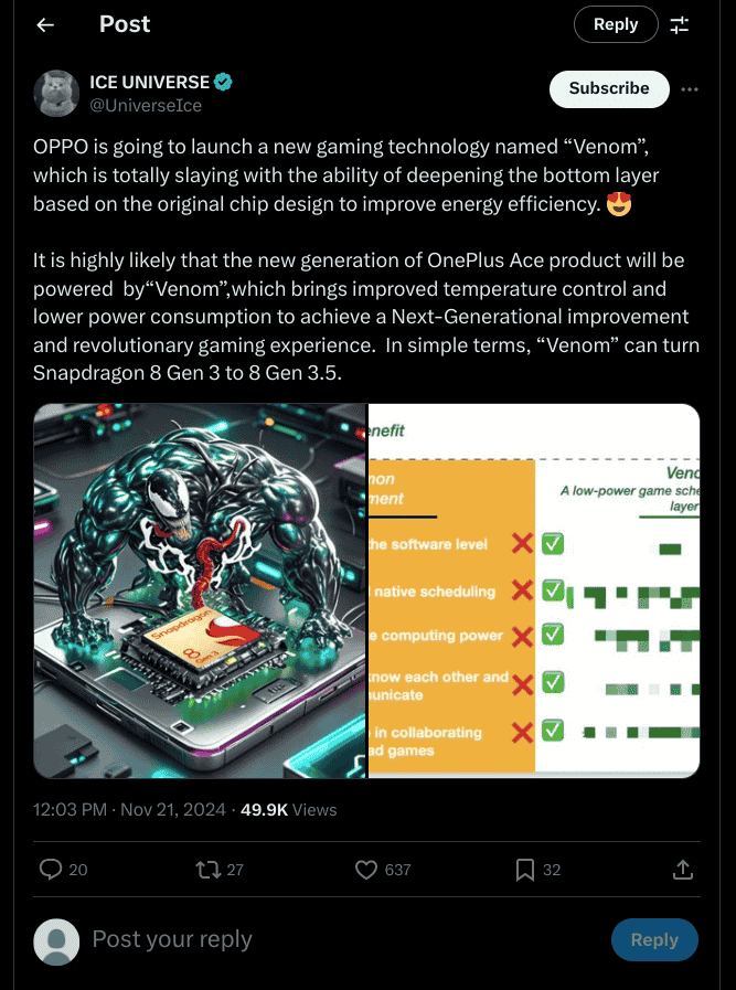 Along with this, another Weibo user has commented ‘Codename: Venom’. While it is still unclear whether this is the OnePlus Ace 5 codename or not, in a related news, ICE UNIVERSE in a X/Twitter post shared that OPPO is working on a new gaming technology called ‘Venom’, and it is believed to be used in the ‘next generation OnePlus Ace product’ (~ OnePlus Ace 5). Improved temperature control and lower consumption will be offered with this technology, enabling users to have a better gaming experience.