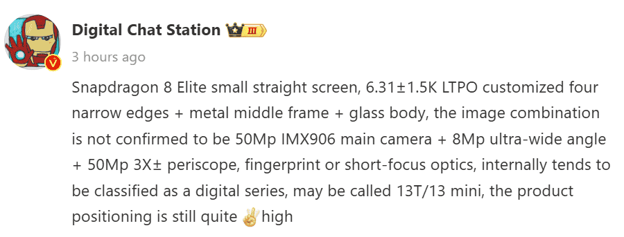 While OPPO is reportedly already in the works with a compact-sized flagship device dubbed ‘Find X8 mini’ (apart from the Find X8 Ultra and Find X8S models), OnePlus was also said to be in works with such a device, however, earlier reports suggested it to be in the Ace 5 series. As per new updates, the compact-sized OnePlus flagship is believed to arrive in the digital series itself, and based on what has been shared by the reliable tipster – Digital Chat Station, this device could either be called as ‘OnePlus 13 mini’ or ‘OnePlus 13T’