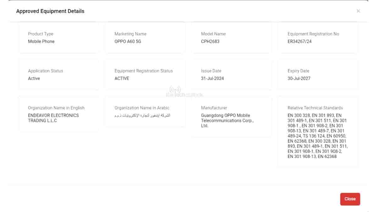 Oppo A3 5G may soon be released in UAE as Oppo A60 5G, spotted on UAE’s TDRA certification