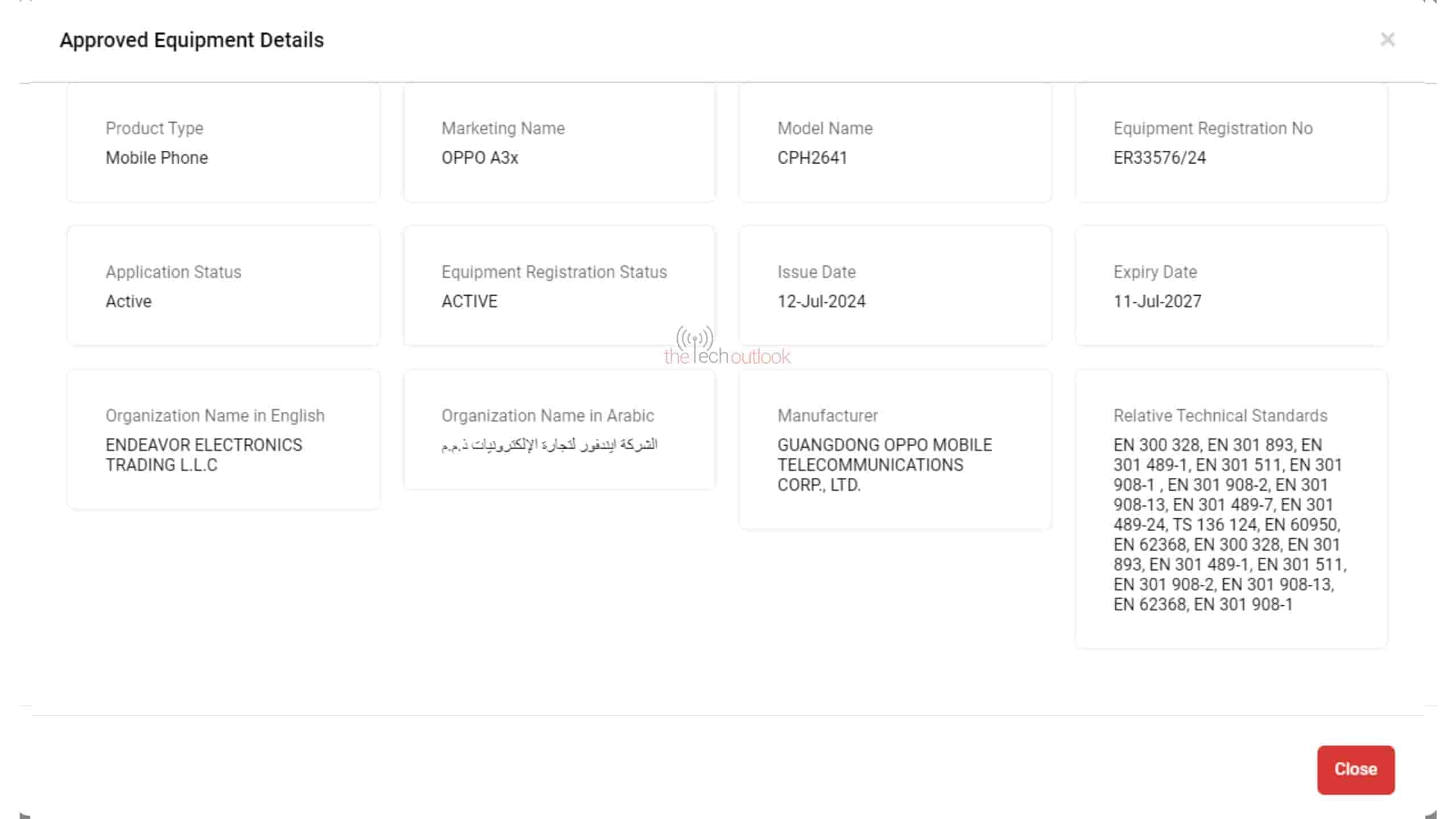 The Oppo A3x has been spotted on the TDRA certification website with the model number “CPH2641,” and the moniker revealed here is the Oppo A3x. This is not the first time it has been seen on a certification site. Previously, it was spotted on the FCC, IMDA, and TUV certification sites as well. The IMDA also revealed its moniker, while the FCC showed that it will have at least 4GB of RAM and 128GB of storage. Furthermore, the FCC revealed that the device will feature an 8MP rear camera and a 5MP front selfie shooter.