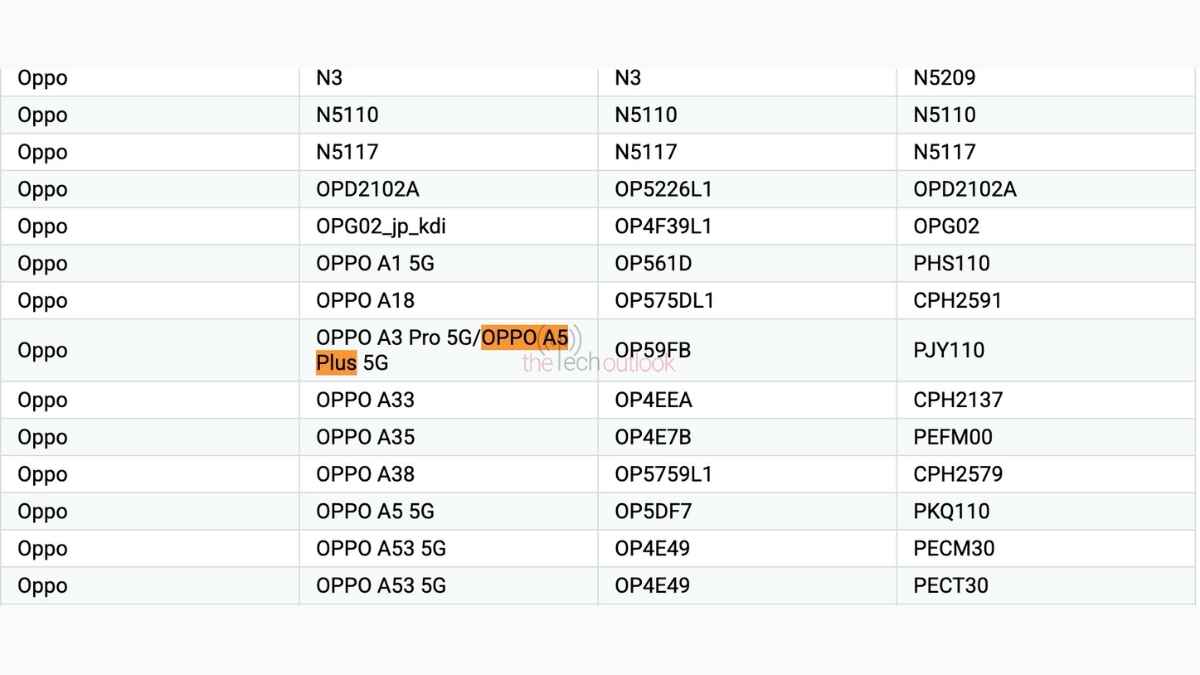 Oppo A5 Plus 5G Spotted on Google Play Console Supported Devices List, Hints at Oppo A3 Pro Rebrand