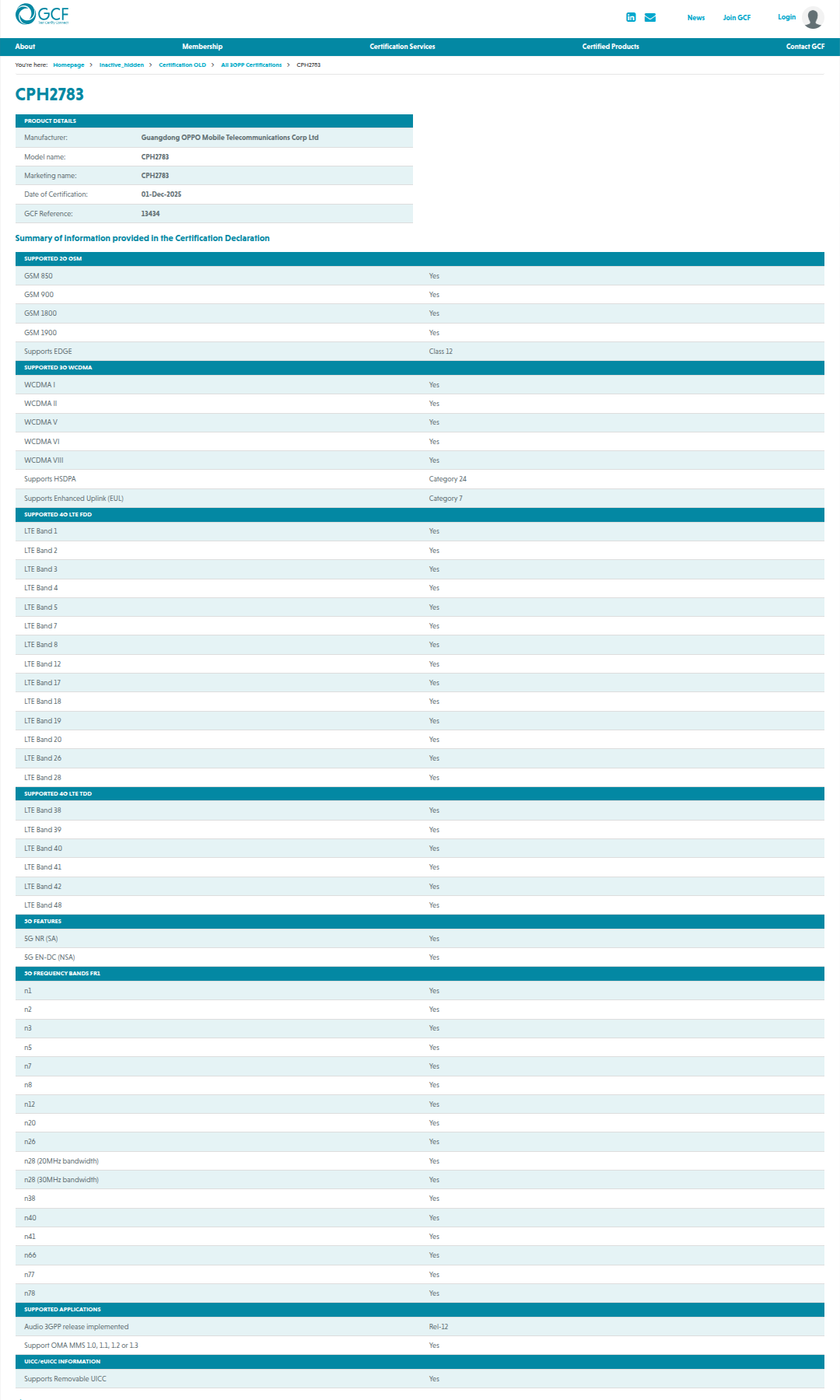OPPO A6 5G (CPH2831) and OPPO A6x 5G (CPH2783) Smartphones Certified by the GCF Authority: Network Connectivity Specs Again Revealed