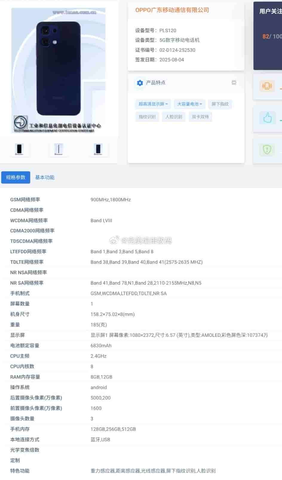 OPPO A6 5G Smartphone Certified by China’s TENAA Authority, Revealing its Key Specs: Shows Similarity With the Reno 14F 5G Model