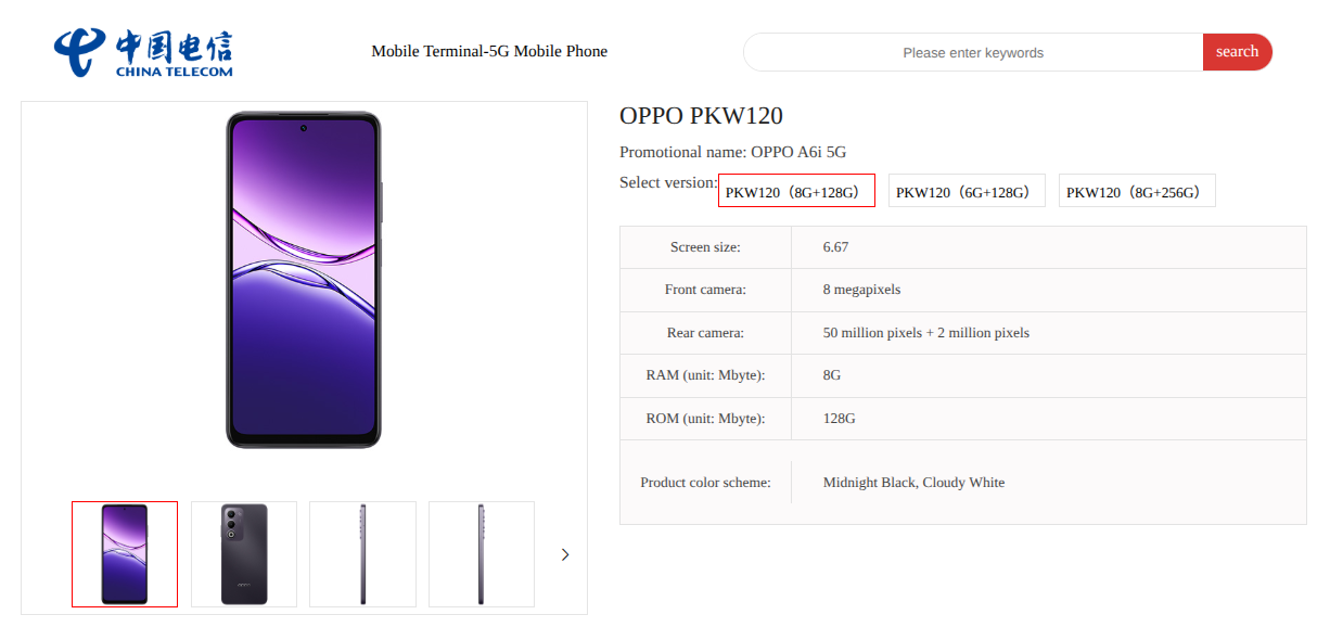 OPPO A6i 5G Smartphone Listed on the China Telecom Website, Revealing Key Specs, Renders, and Launch Date