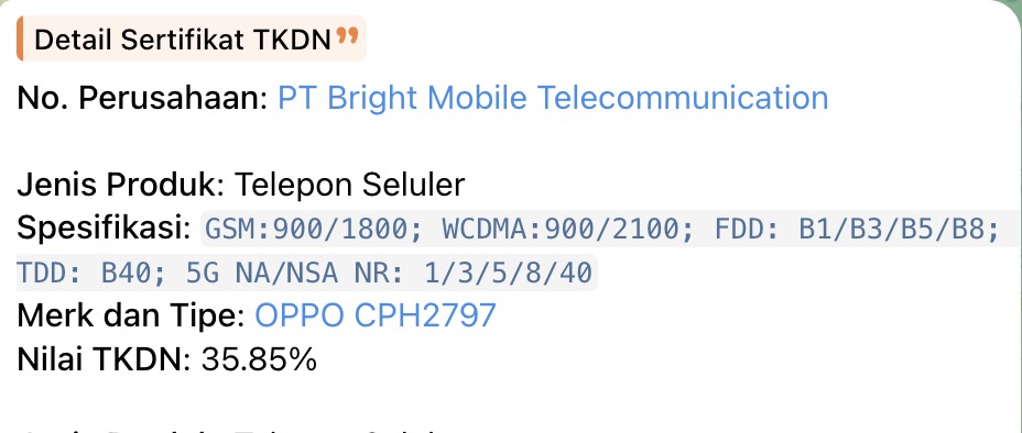 OPPO ‘CPH2797’ – WiFi Alliance, SDPPI, and TKDN Certifications