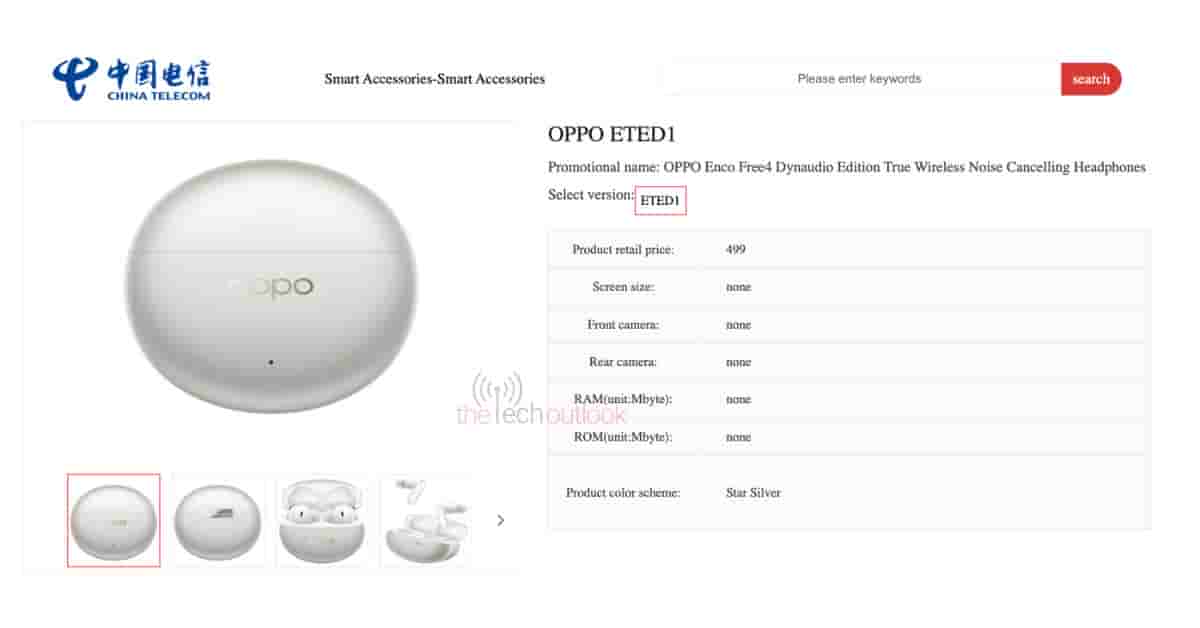 The OPPO Enco Free 4 earbuds with the model number of ‘ETED1’ has been listed on the China Telecom website, and the device featured on the database is its Star Silver color variant. The retail price of this earbuds device is pointed out to be CNY 499, and it is revealed to be a Dynaudio Edition or Tuned True Wireless Noise Cancelling Headphones.