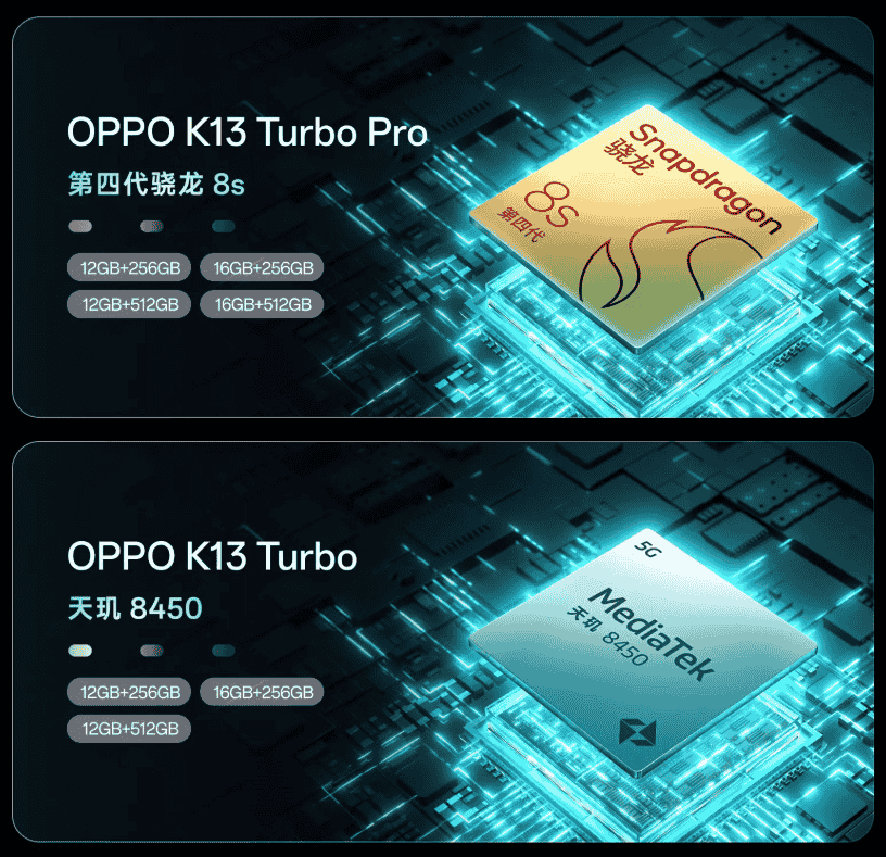 Oppo K13 Turbo and K13 Turbo Pro leaked promotional materials reveal chipset, memory configuration and color option details