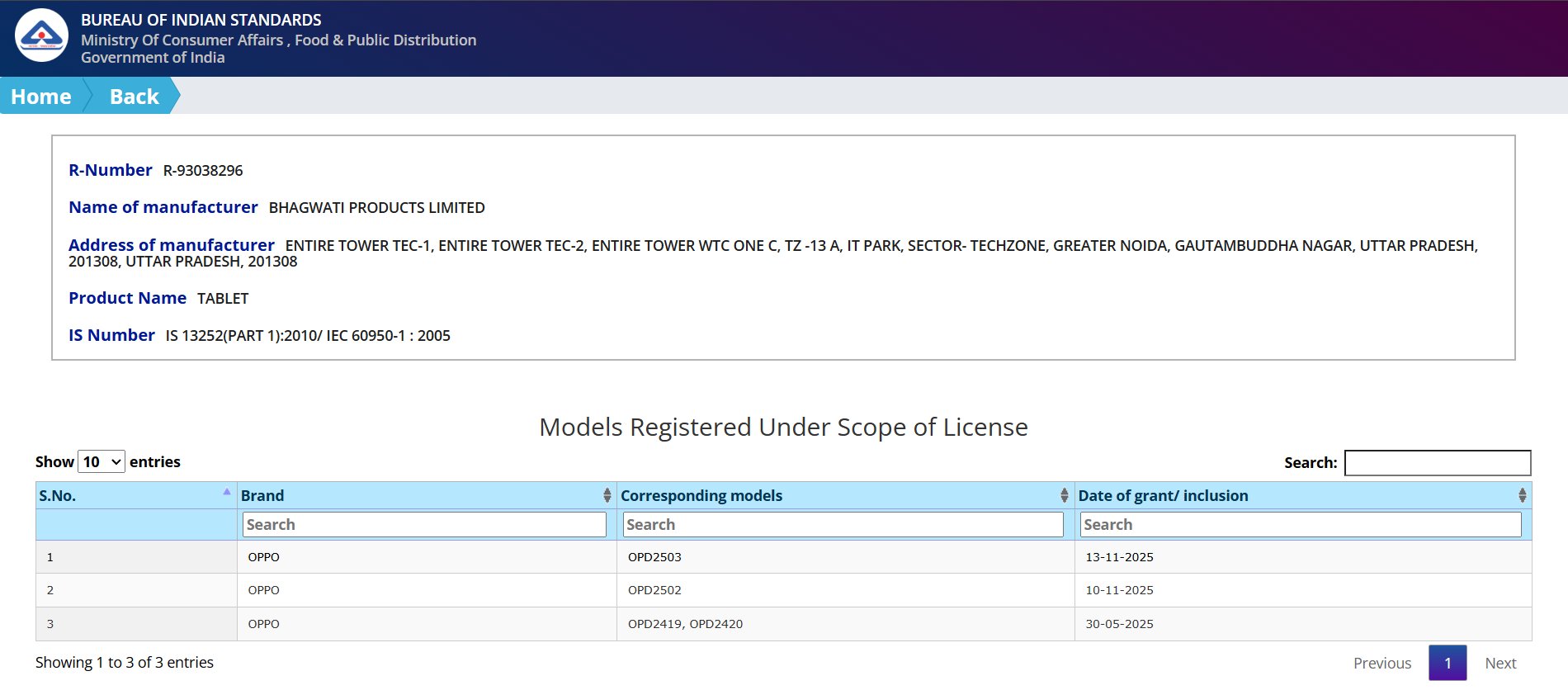 The tablet is said to arrive with two variants- 5G (OPD2503) and WiFi-only (OPD2502). Both the variants have now made it to the BIS certification website, confirming the launch of Oppo Pad 5 Matte Display Edition in India (via @Sudhanshu1414).