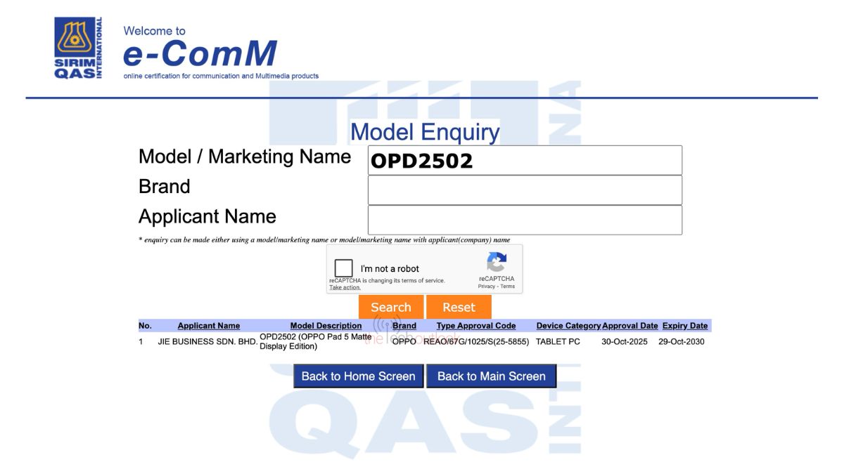 It appears that the company will soon unveil the Oppo Pad 5 Matte Display edition in the global markets as well. Today, our team at The Tech Outlook has spotted Oppo Pad 5 Matte Display edition on Malaysia’s SIRIM certificate website with model number OPD2502 and type approval code REAO/67/1025/S(25-5855).