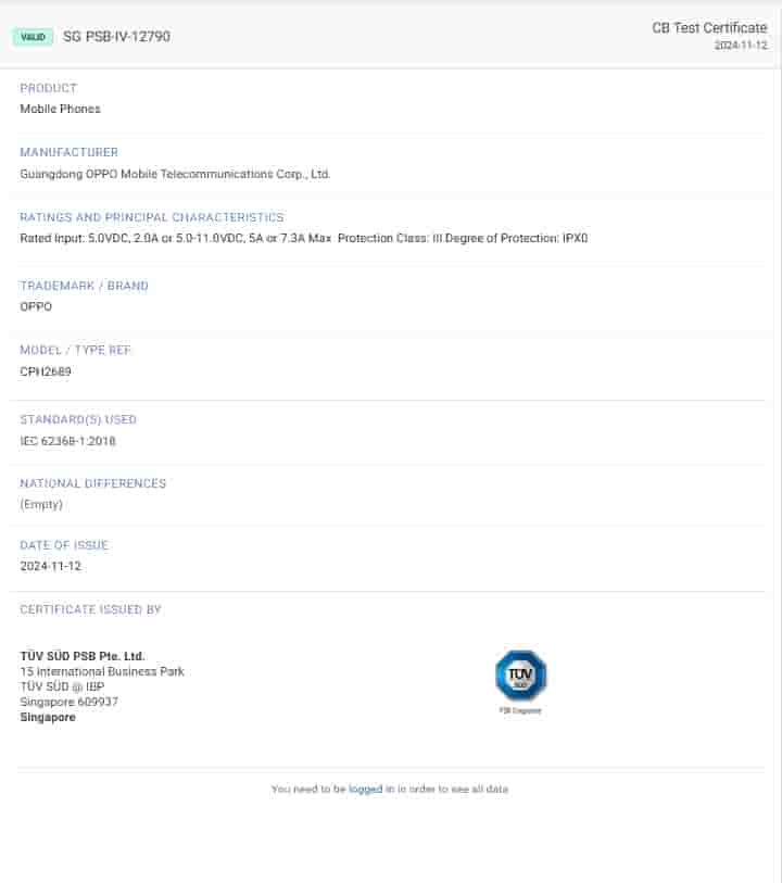 Oppo Reno 13 5G has now been spotted on the NBTC certification website with model number CPH2689. The database confirms the moniker and also reveals that the device will support GSM/WCDMA/LTE/NR connectivity options.