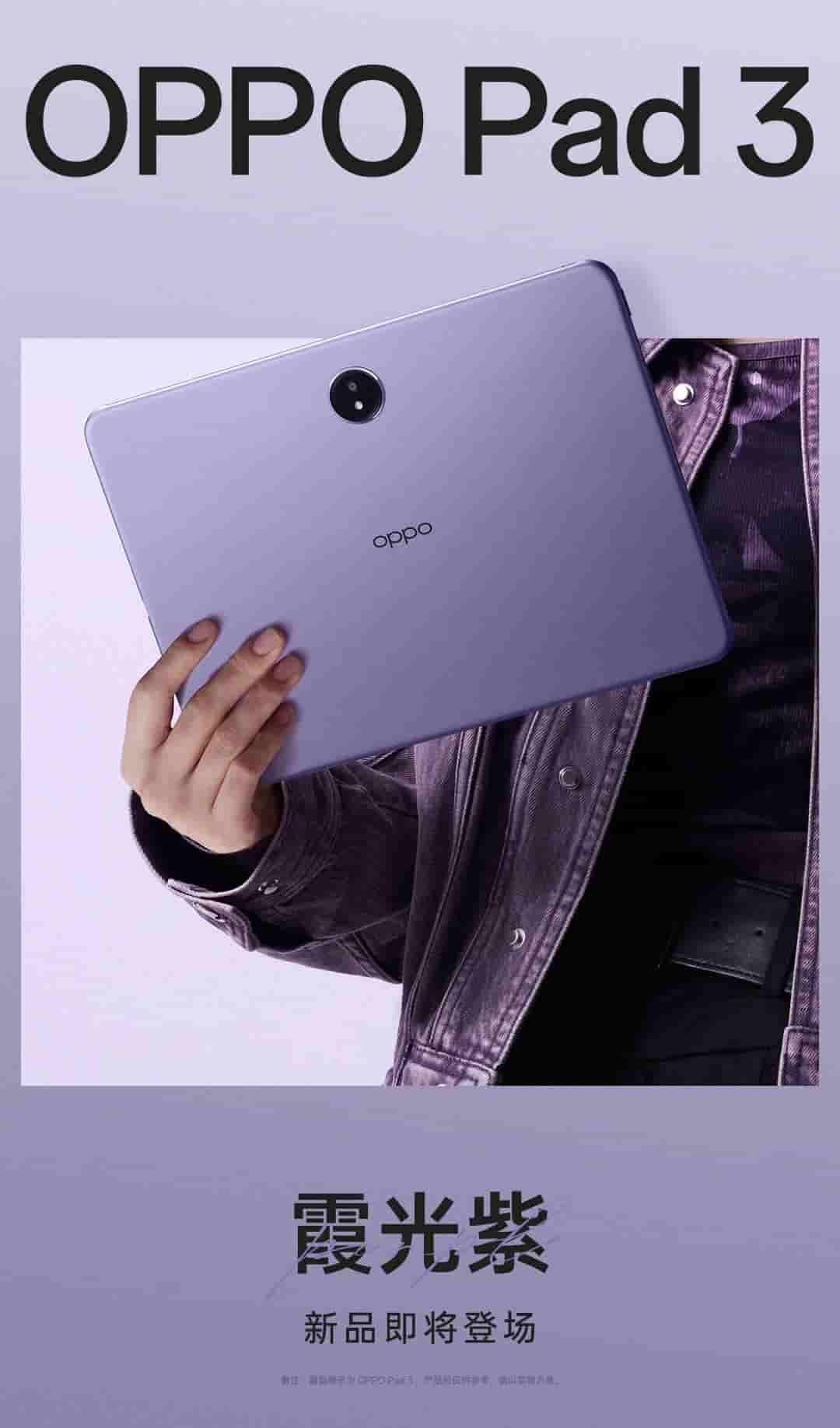 The design of the OPPO Pad 3 tablet has also been revealed, and it resembles the already-launched OPPO Pad 3 Pro. Three color variants can be expected for the upcoming OPPO Pad 3 – Silver(Star Track Bright Silver), Purple(Xiaguang Purple), and Blue(Night Blue).