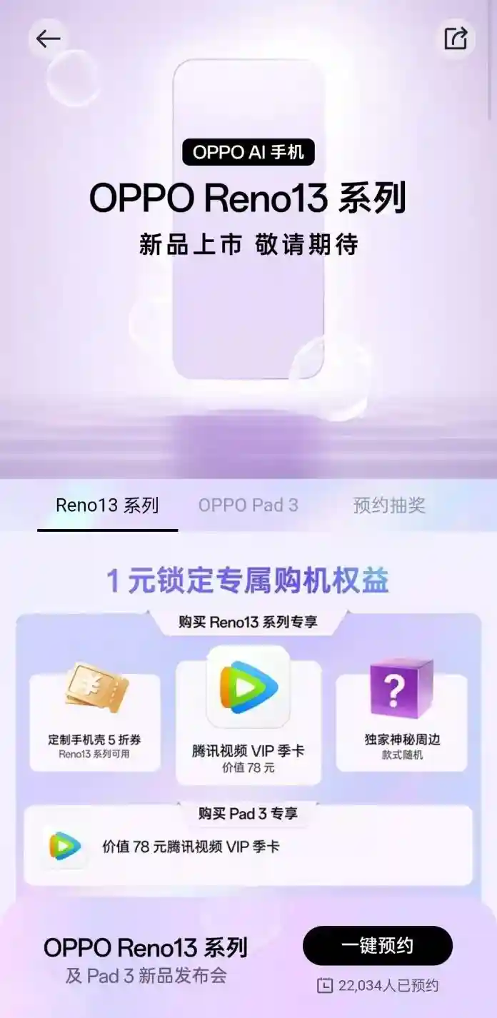 The latest Reno 13 series and Pad 3 devices are said to debut in China on the 25th of November 2024 (Reno 13 series India launch in January 2025), and its pre-reservation went live recently. Some of the exciting benefits that will be offered to customers include a 50% discount voucher for customized phone case at CNY 1, exclusive mystery merchandise, and a seasonal Tencent Video VIP membership for Reno 13 series, and gift box at CNY 29.9, original stylus, and magnetic protective case for the Pad 3.