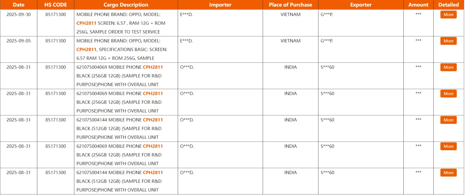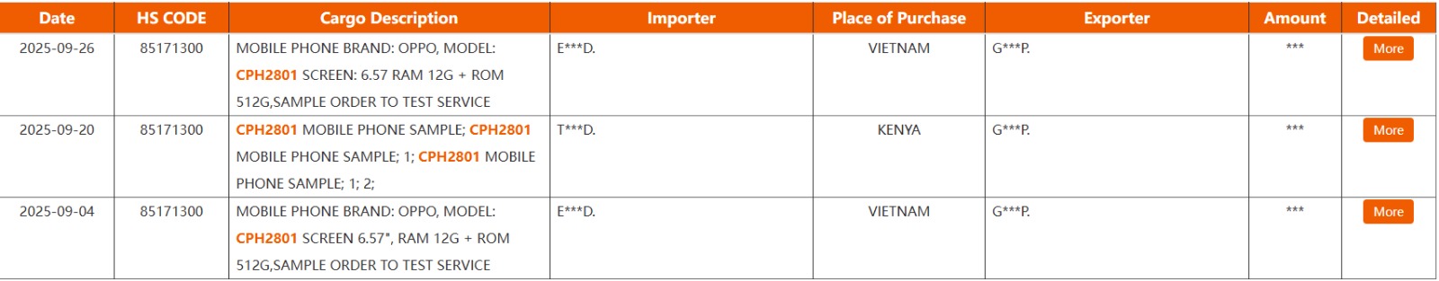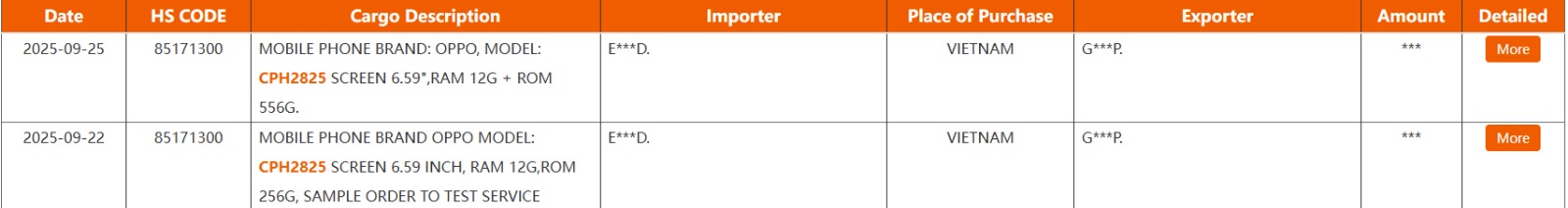 On the NBD database, the OPPO Reno 15 5G is revealed to feature a 6.59″ display, and likely offer 12GB/256GB and 12GB/512GB (mentioned as 556GB*) storage options. It is listed with the HS code of ‘85171300’. With the same HS code of ‘85171300’, the OPPO Reno 15 Pro Max 5G has also been listed on the NBD database. OPPO’s Reno 15 Pro Max 5G is revealed to bring 12GB/256GB and 12GB/512GB storage options, however it is mentioned to feature a display screen of 6.57″ (smaller than the standard model). Again, with the same ‘85171300’ HS code, OPPO’s Reno 15F 5G smartphone has also been listed, with a 6.57″ display and 12GB/512GB storage option.