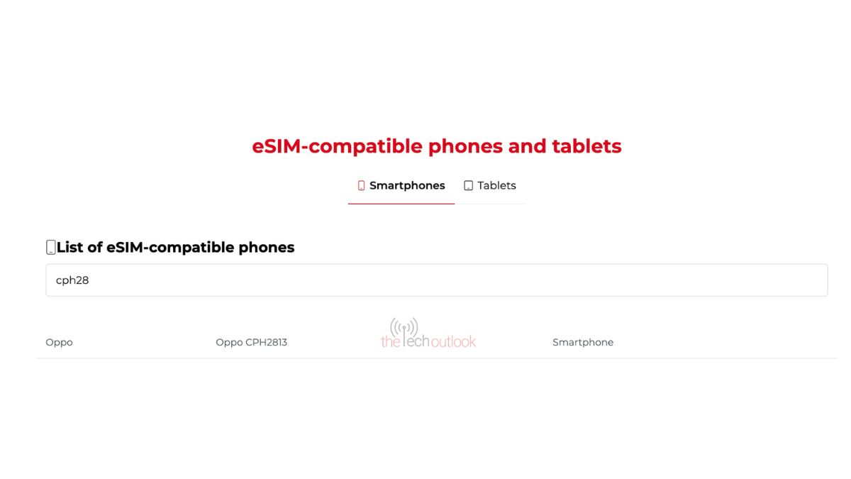 The next certification is the e-SIM compatibility website, which also shows the same model number under the list of compatible devices.