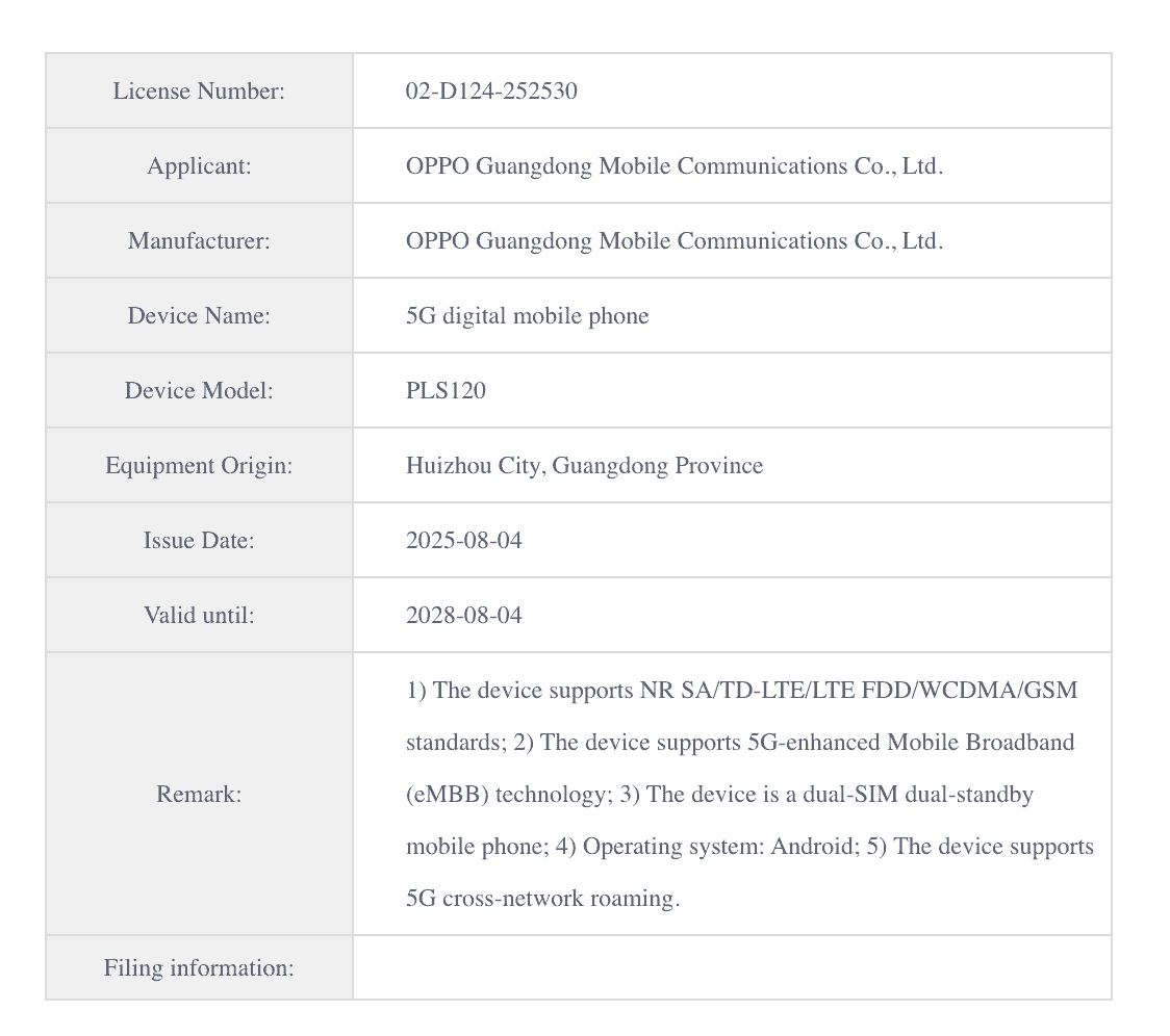 Oppo’s new smartphone with model number “PLS120” spotted on China’s MIIT certification