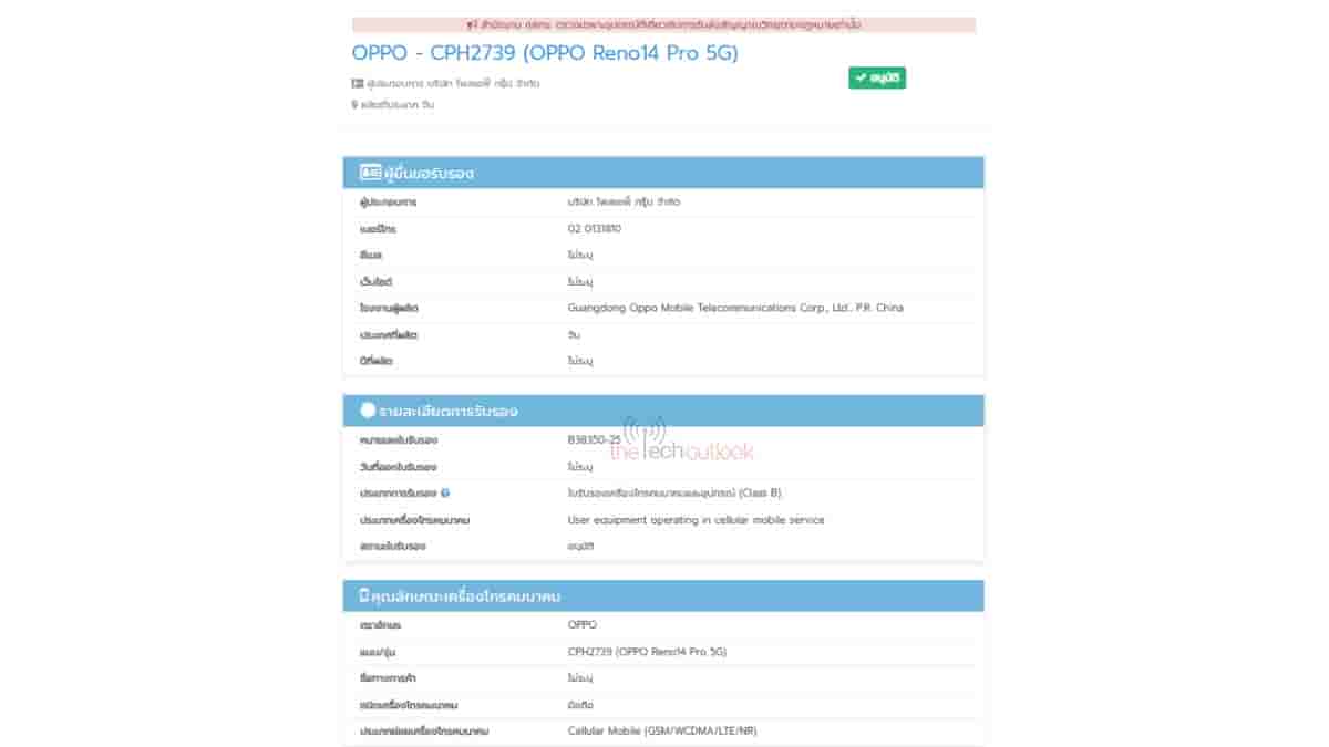 OPPO Reno 14 Pro 5G – NBTC, IMDA, and BIS Certifications