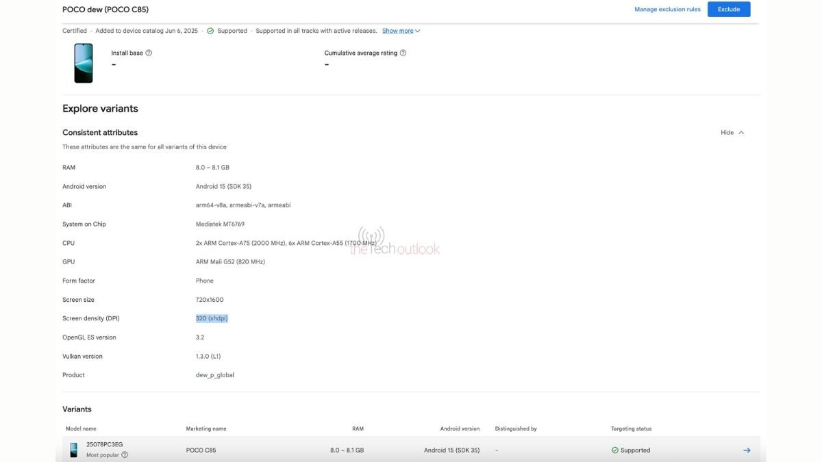 Poco C85 4G (25078PC3EG) spotted on Google Play Console with Helio G81 and 8GB RAM