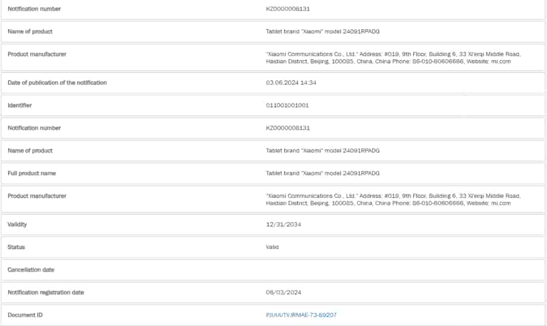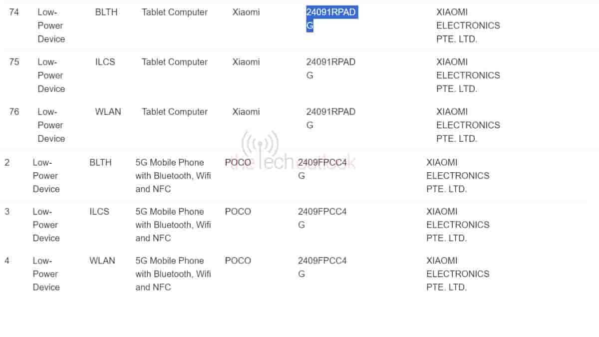 Other than this smartphone we also spotted Xiaomi Pad 7 with model number 24091RPADG on the above database. It is revealed that the tablet will arrive with Bluetooth and WLAN support.