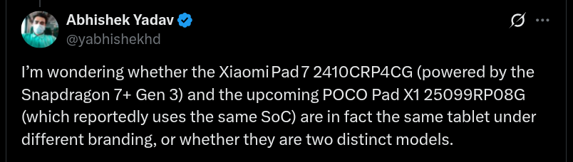 Speaking more, the POCO Pad X1 tablet will be arriving as a proper mid-flagship tablet model for the brand’s global customers, and it is possibly going to be a re-branded version of the October 2024-released Xiaomi Pad 7 (codename – ‘uke_p’). Thus, the device is expected to offer premium hardware specs as well as competitive display technologies, and as indicated it will be targeting the flagship tablet class.