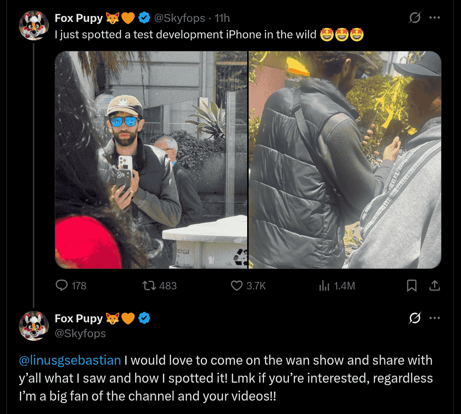 This update originally comes from an X user who goes by the name Fox Pupy (@Skyfops) and it has quickly gained attention in the tech community as it appears to be an actual field testing prototype of the iPhone 17 Pro smartphone. While the device is concealed within a Black protective case, notable design aspects such as the three triangularly-placed camera sensors at the top-left portion, along with the LED flashlight, microphone hole, and the LiDAR sensor at the top-right portion can be be easily spotted.