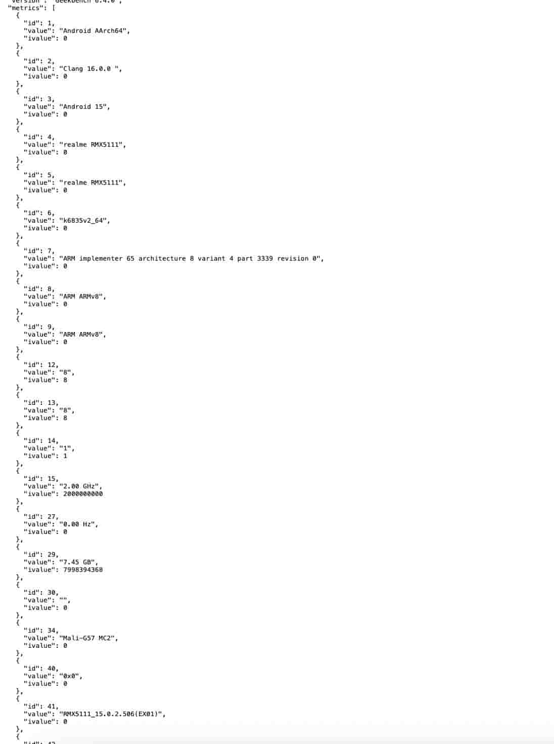 Its Geekbench listing reveals that the Realme 15T 5G (RMX5111) was able to achieve single-core and multi-core performance scores of 806 points and 1972 points respectively. The benchmark database also mentions that the device will have the Android 15 operating system out of the box. MediaTek’s Dimensity 6400 chip (k6835v2_64) with a primary clock speed of 2.50 GHz will likely power the device, and it will also be integrated with the ARM Mali-G57 MC2 GPU. To add, it is the 8GB RAM variant of the device that has been listed on the Geekbench database.