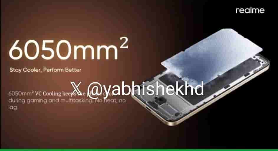 Coming to the performance aspects, the leaked details suggest that Realme’s 15T 5G will be making use of the MediaTek Dimensity 6400 Max 5G chipset (6nm). On the AnTuTu database, a benchmark score of 480K+ points is also revealed for the device. For a stable and lag-free experience, a 6050 mm² VC cooling is also going to be offered according to the leaked details.