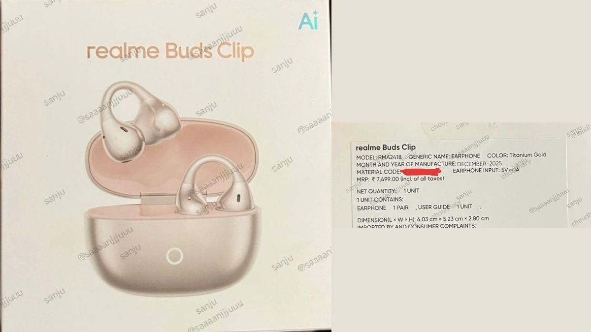 Realme Buds Clip Indian retail box image and MRP leaked, tipped to launch soon in India alongside Realme P4 Power 5G