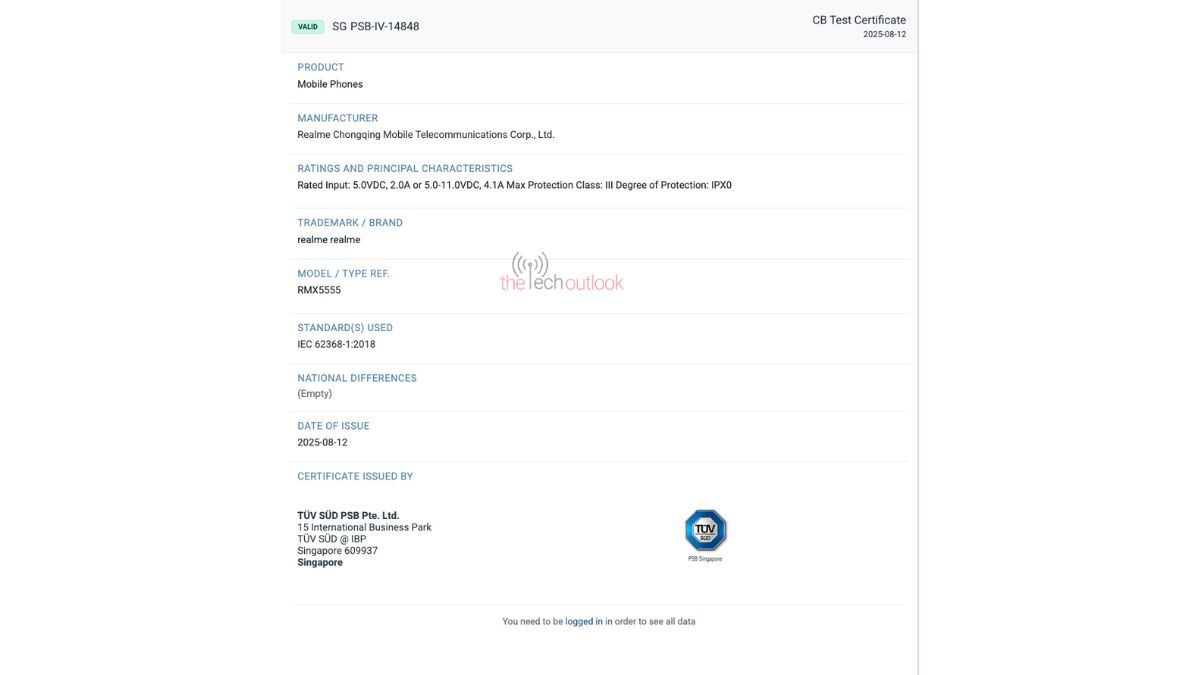 Regarding its TUV SUD certification, the Realme C85 Pro smartphone has been listed on the certification database with the certificate number of ‘SG PSB-IV-14848’. Again, the upcoming device has been categorized as a ‘Mobile Phone’, and it is revealed with features like 45W wired fast charging and Class III protection (~ protective design with low voltage operation). Also, its degree of protection is mentioned as ‘IPX0’, which could either mean that it hasn’t been tested yet for water and dust protection or it won’t be offering any sort of protection.