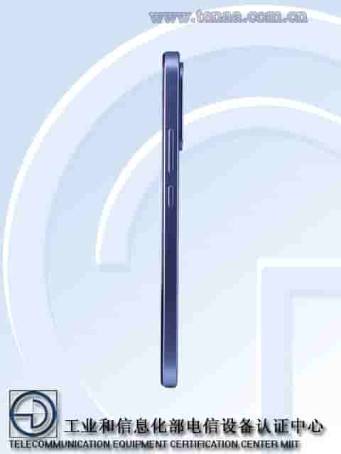 Coming to its design, this Realme device also features a flat display, flat rear, and flat side panels. At the rear, a squircle-shaped camera module is given, within which three circular inner camera units can be spotted. Likely the last one could be an auxiliary lens. An LED flashlight is also there inside the camera module. On the display, a punch-hole centrally-placed selfie camera is featured. Also to add, its volume rockers and power button are present on the right side panel, while the left side panel remains vacant.