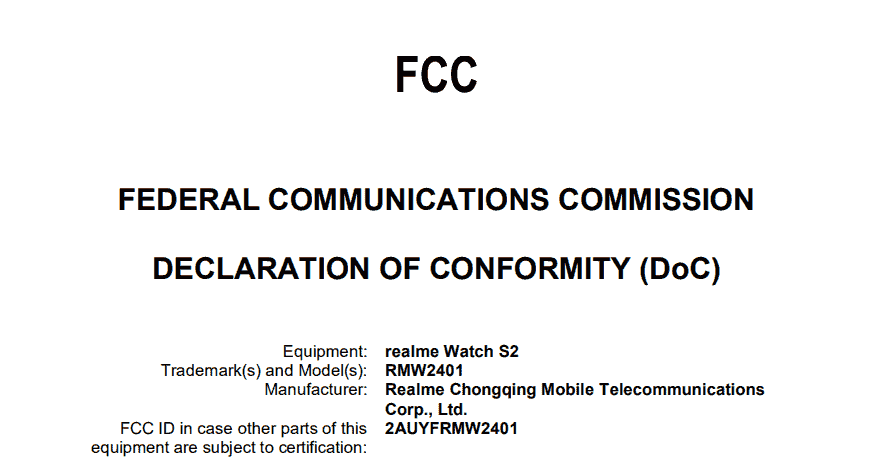 This is because Realme Watch S2 has made its appearance on the FCC certification website with model number RMW2401 and FCC ID- 2AUYFRMW2401.