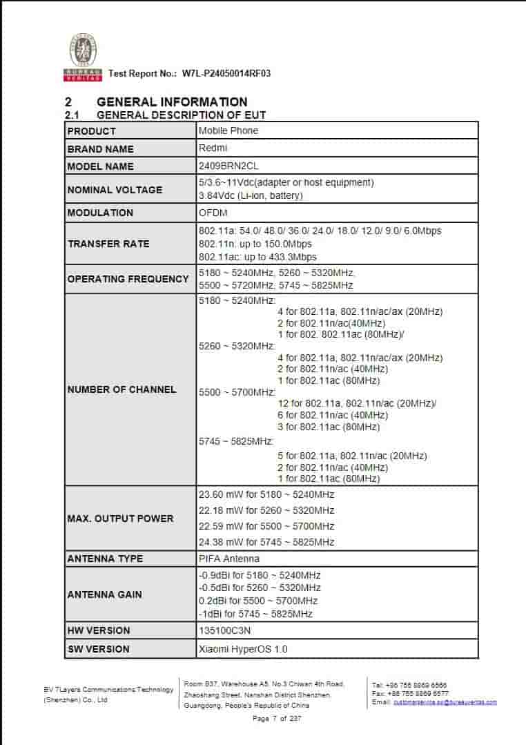 Redmi 14C with model number 2409BRN2CL has also made its appearance on the FCC certification website. It was spotted with FCC ID- 2AFZZRN2CL. The database reveals that the smartphone will run on Xiaomi HyperOS 1.0. It will arrive with support for WiFi 5. The device will sport a PIFA Antenna that arrives with model number C3N. It will support 5G and Bluetooth connectivity.