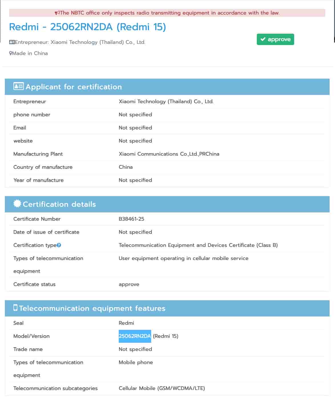 Redmi 15 4G and POCO M7 4G devices spotted on NBTC certification website