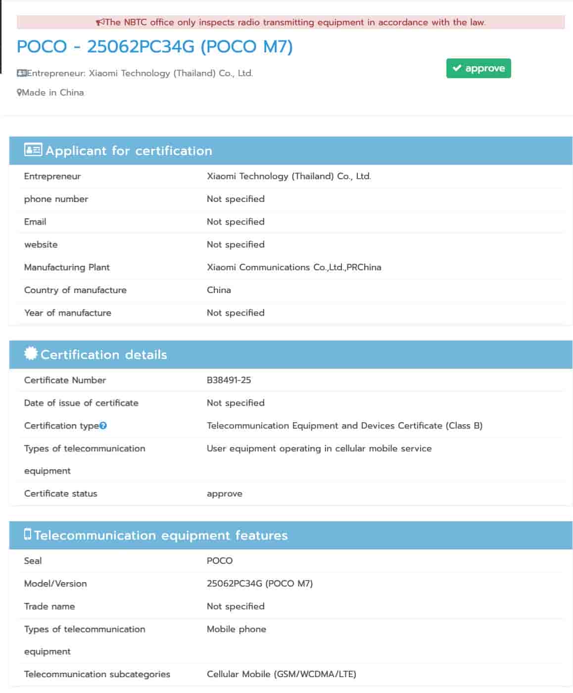 Redmi 15 4G & POCO M7 4G: Spotted on Thailand’s NBTC database