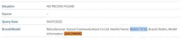 As per a report by NotebookCheck, Redmi 15 5G was spotted on IMEI and FCC certification websites with model number 25057RN09G.