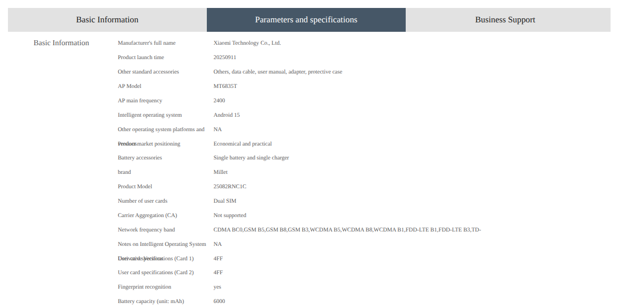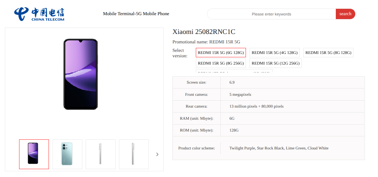 Redmi 15R 5G (25082RNC1C) – China Telecom Listing