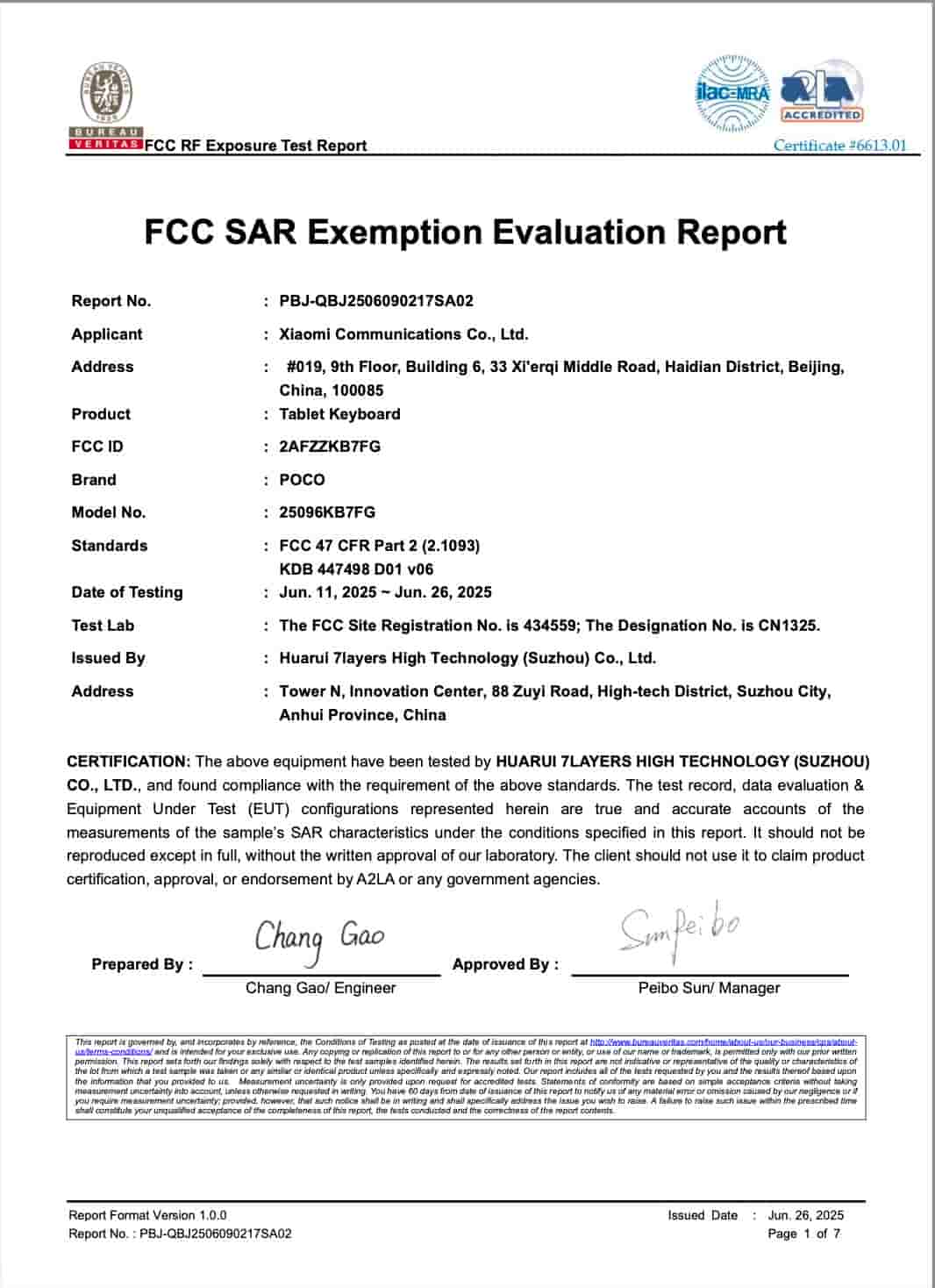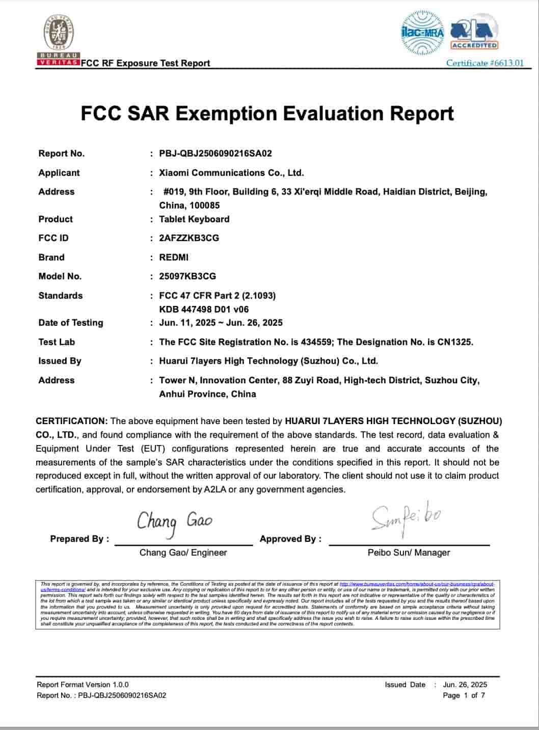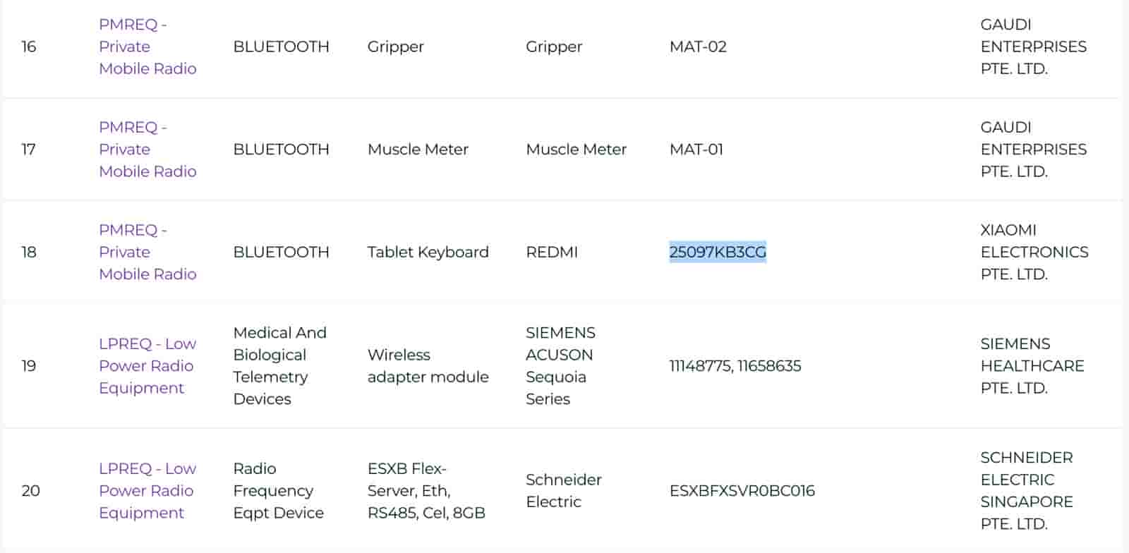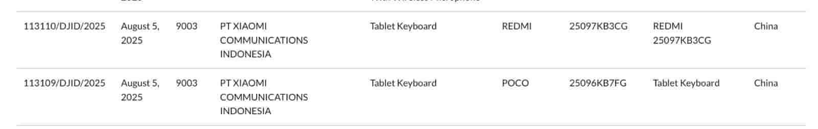 Redmi ‘25097KB3CG’ and POCO ‘25096KB7FG’ Tablet Keyboards Certified by the FCC, IMDA, SDPPI Authorities