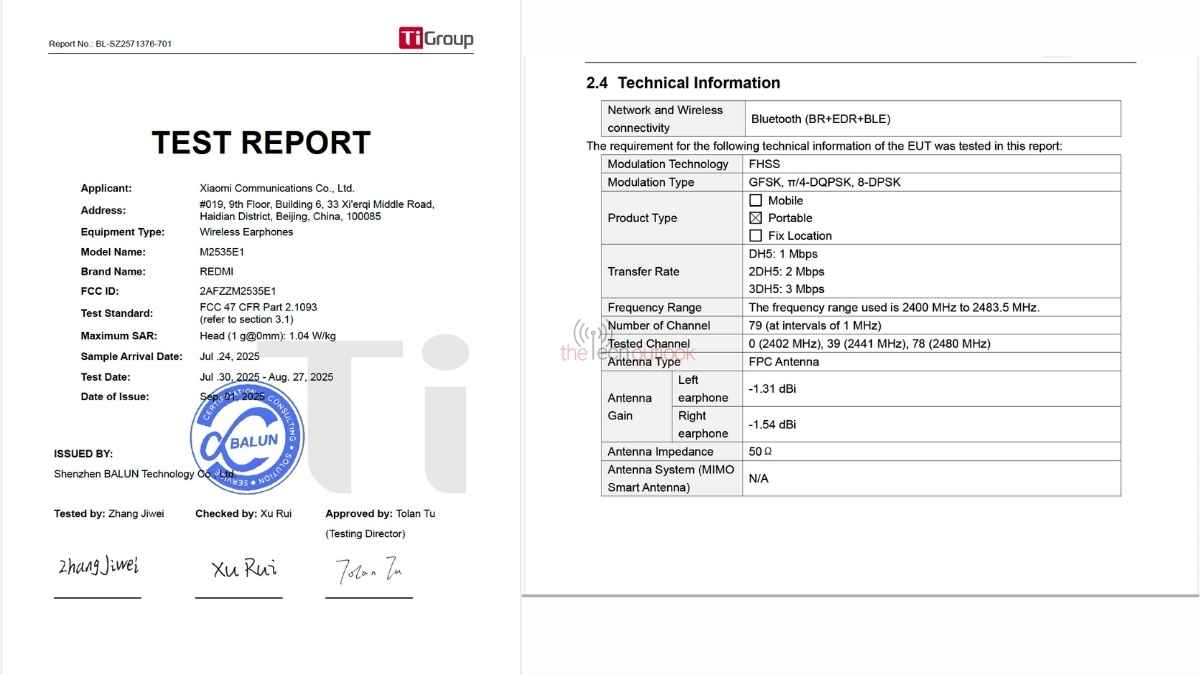 Redmi Buds 8 Pro (M2535E1) – FCC and TDRA Certifications