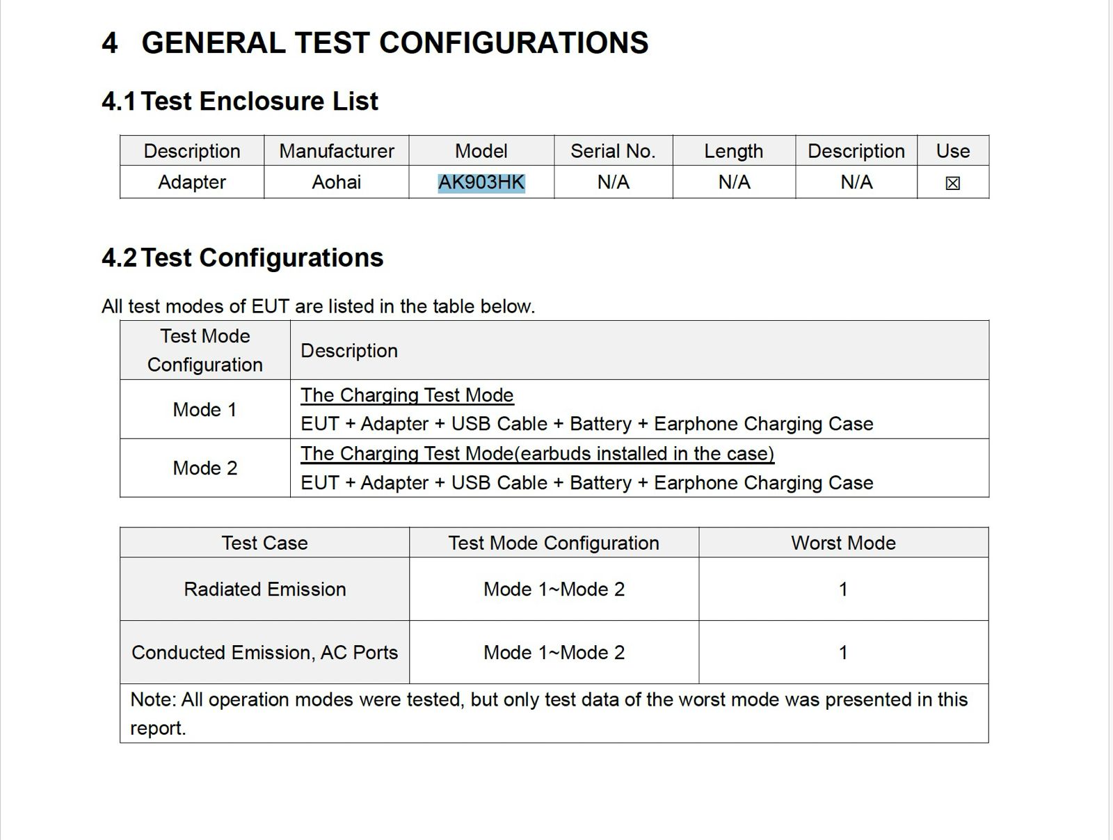 Xiaomi’s Redmi Buds 8 Pro earbuds device carries the model number of ‘M2535E1’ and it has been certified by the FCC authority with the FCC ID of ‘2AFZZM2535E1’. The device is listed on the certification database as ‘Wireless Earphones’, and it is revealed to support Bluetooth connectivity (with BR + EDR + BLE modes and GFSK + π/4-DQPSK + 8-DPSK modulation types). FPC antenna type, 2400 MHz to 2483.5 MHz frequency range, 79 channels, 50Ω antenna impedance, and antenna gain of -1.31 dBi and -1.54 dBi respectively on the left and right earphones are its other mentioned connectivity specs. A charging adapter with the model number of ‘AK903HK’ (from OPPO) was also used to test the device, and it is thus pointed out to support 10W fast charging.