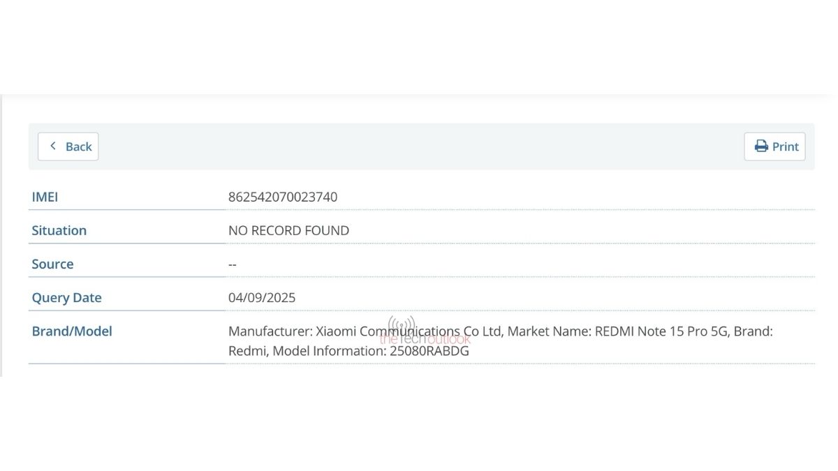 The Redmi Note 15 Pro 5G smartphone’s global variant carries the model number of ‘25080RABDG’, and it has been listed on the IMEI database with the number – ‘862542070023740’. Notably, its moniker has also been mentioned on the database.