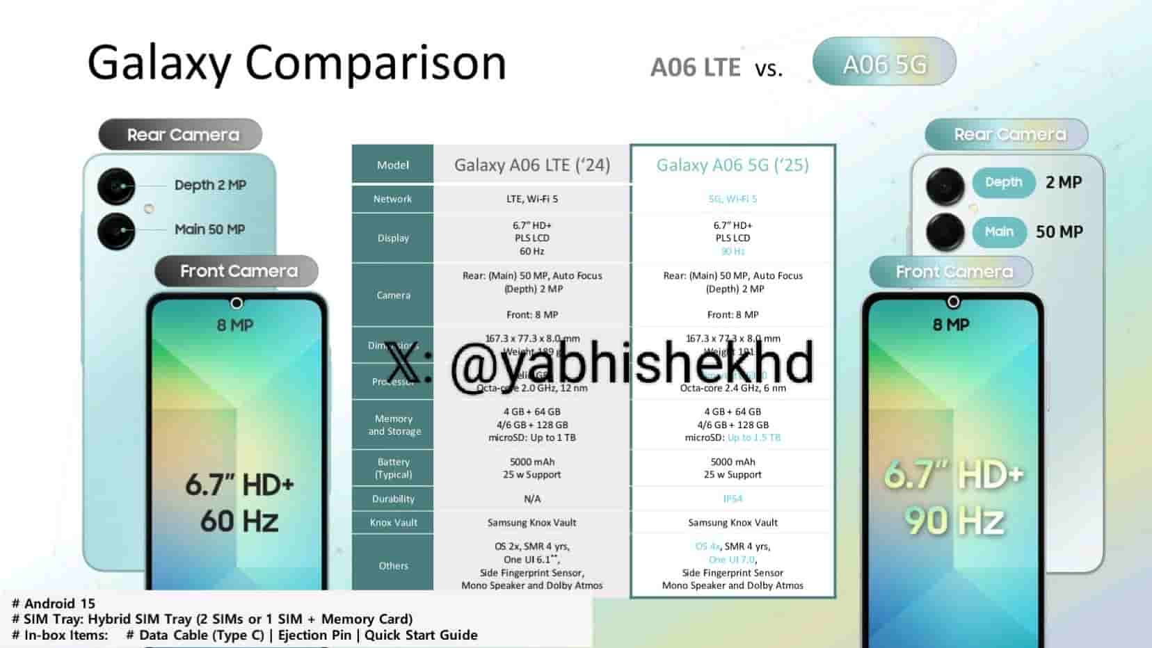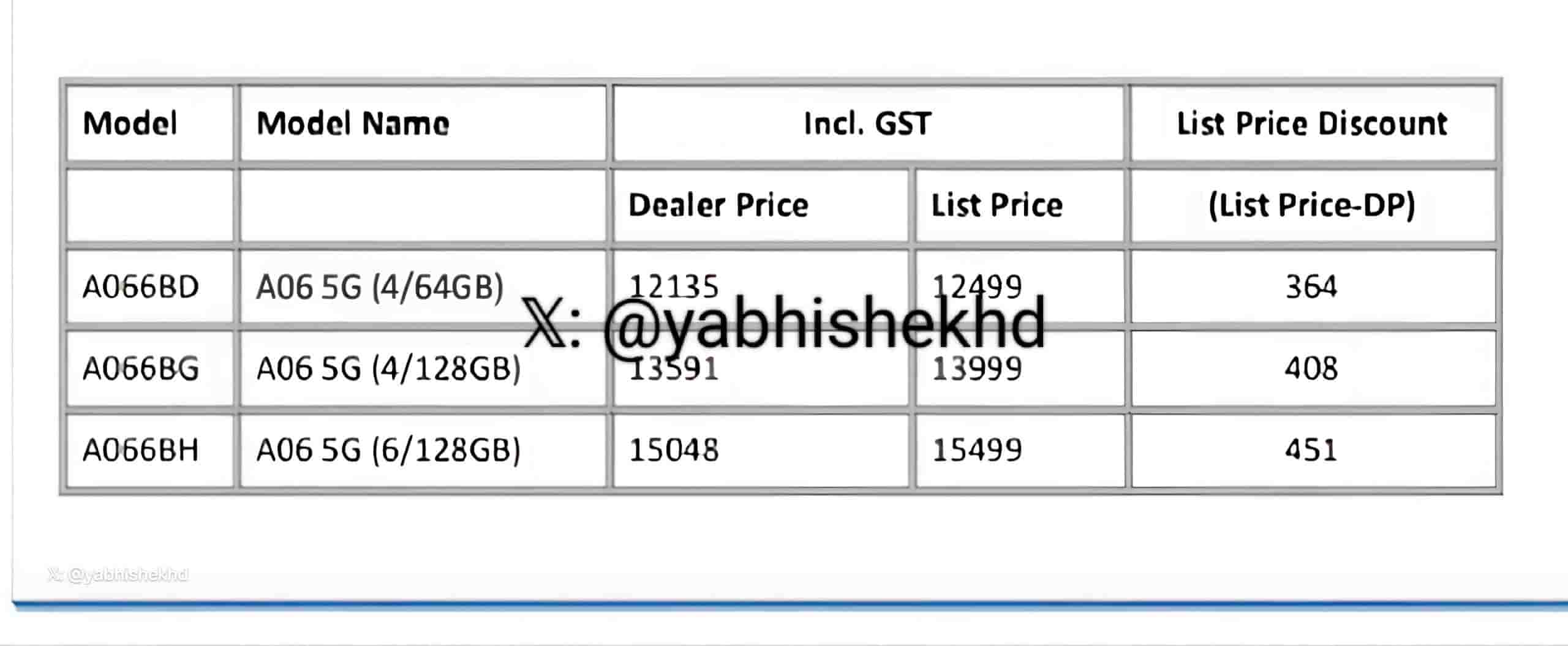 Samsung’s upcoming Galaxy A06 5G model has been a part of many reports already and its full specifications were previously shared online. Following these updates, the complete specs and comparison charts of the device as well as the pricing details of the Indian variant have now been revealed via an X tipster (@yabhishekhd).