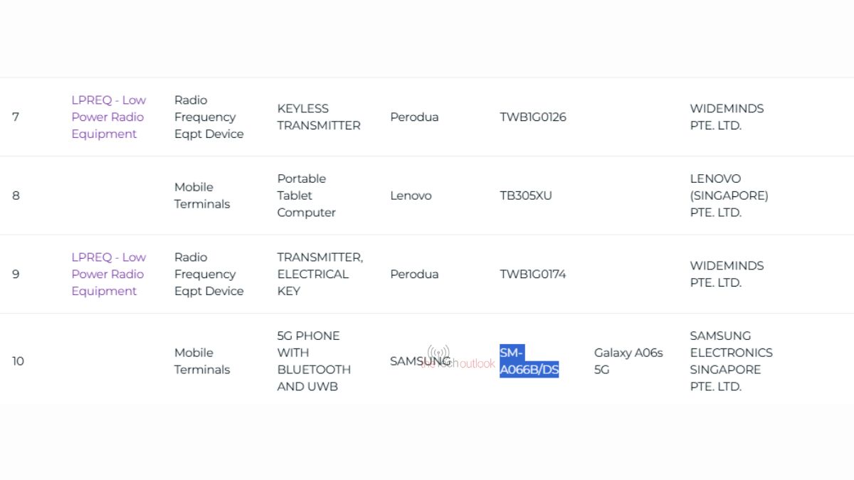 But the catch is instead of Galaxy A06 5G, the device was spotted with the moniker Galaxy A06s 5G. This suggests that Samsung may launch Galaxy A06 5G as Galaxy A06s 5G in Singapore, with just a change in moniker while the specs are expected to remain the same. The above database reveals that this is a 5G device with Bluetooth and UWB.