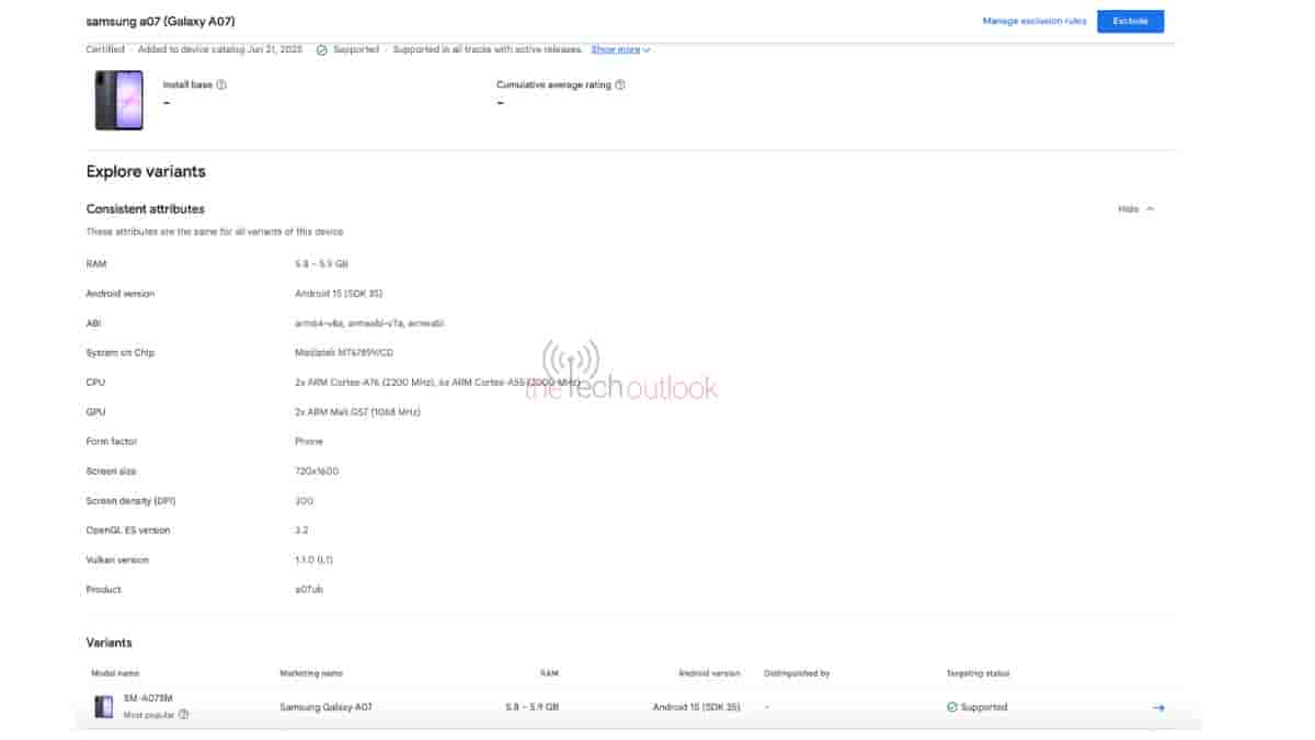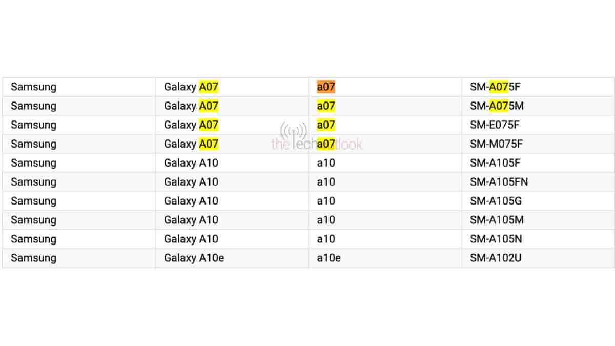 Samsung Galaxy A07, M07, and F07 Spotted on Google Play Console; A07 Listing Reveals Key Specifications