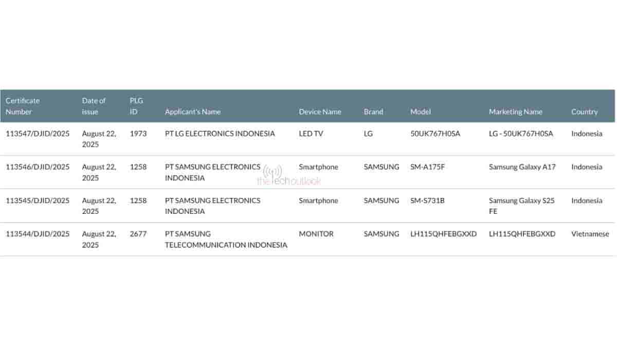 Other than the GCF and SDPPI, Galaxy A17 4G has also bagged Bluetooth SIG and WiFi Alliance certifications. Samsung’s Galaxy S25 FE so far has been spotted on the NBTC, GCF, EPREL, FCC, TUV Rheinland, WPC, and Geekbench databases. Yesterday, the key specs of the Galaxy S25 FE were also tipped online.