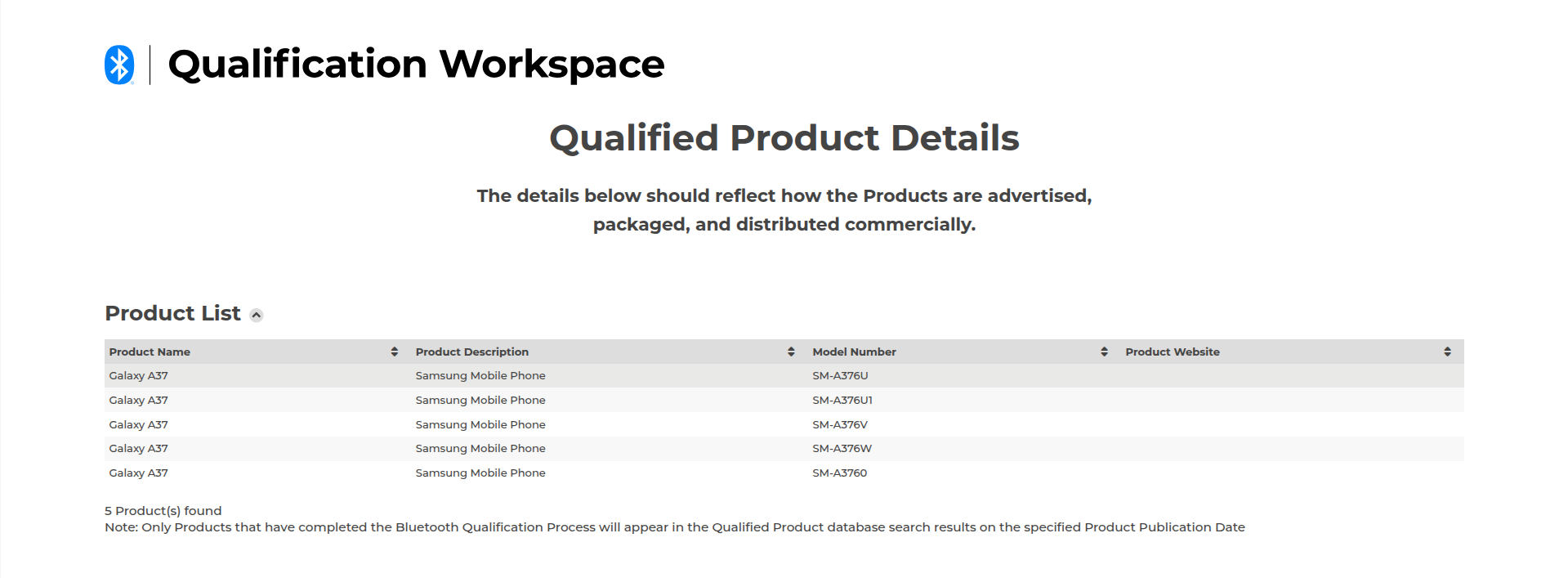 Samsung Galaxy A37 – Bluetooth SIG Certification